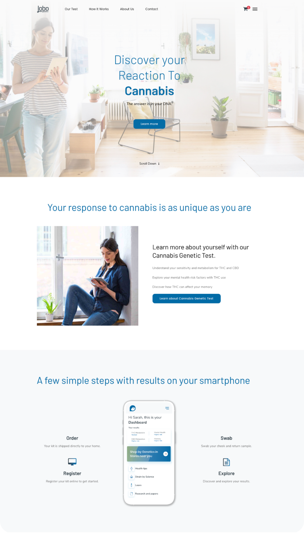 Lobo Genetics multi-platform direct-to-consumer DNA testing platform enables safer cannabis use through DNA testing. Consumers and patients can gain actionable insights into their personal responses to cannabis based on their genetic profiles.